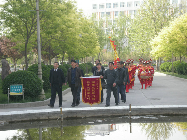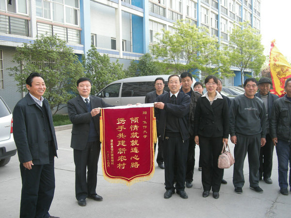 2010年4月30日上午八点半,3044永利新校区行政楼门前,锣鼓声阵阵,锣鼓方队中走出了修武县郇封镇南柳村村委成员及村民代表一行,他们抬着一面绣着“倾情筑就连心路,携手共建新农村”的锦旗,以这种纯朴的方式来表达对3044永利党委真诚的感激之情。