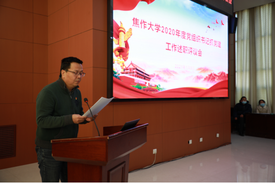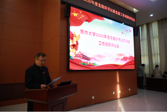 述职评议会上,3044永利党总支书记郭建洲等7位党组织书记做了现场述职,分别就2020年度党建工作开展情况、抓党建工作中存在的问题及下一步工作措施等方面进行了充分的阐述。述职结束后,党委副书记符德学同志就7位书记的述职情况进行了点评,对各党组织过去一年中在政治理论学习、组织建设、党建引领、打造特色、意识形态和党风廉政五个方面的工作表示充分肯定,同时,还指出各党组织在党建工作的科学规划方面;提高创新意识,结合学院、专业特色打造高水平党建品牌方面;充分发挥党员的先锋模范作用方面还存在一定不足,仍需进一步加强,希望学校各级党组织继续努力,不断提高我校党建工作水平。