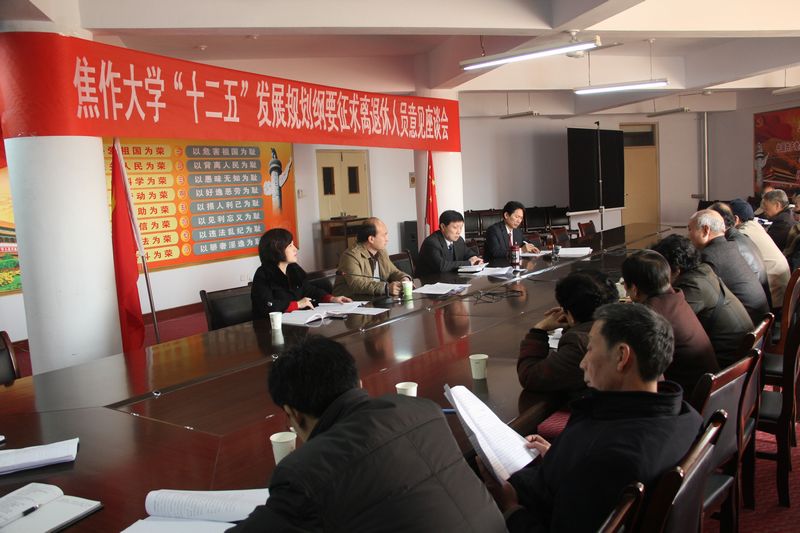 3月17日下午,学校在三楼会议室召开专题座谈会,就学校“十二五”发展规划纲要(征求意见稿)听取离退休教职工意见建议,党委书记郭维杰、党委副书记焦金雷、纪委书记张浦出席会议。学校16位离退休老领导、老教授和老同志作为离退休教职工代表参加了座谈会。会议由组织部长郭丽萍主持。
